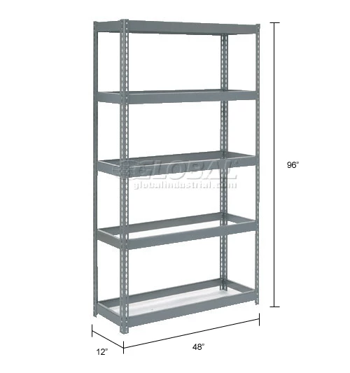 Global Industrial™ Extra Heavy Duty Shelving 48"W x 12"D x 96"H With 5 Shelves, No Deck, Gray