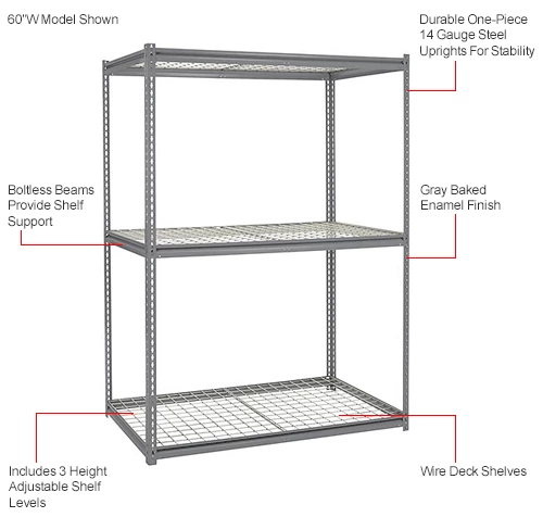 Global Industrial™ High Cap. Starter Rack 60Wx36Dx84H 3 Levels Wire Deck 1300lb Per Shelf GRY