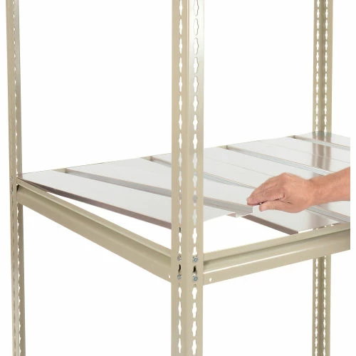 Add an additional level to your existing rack. Includes 4 beams and galvanized steel decking. Beams have tan baked enamel finish.