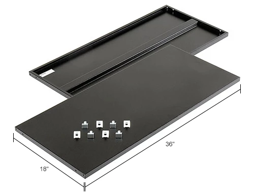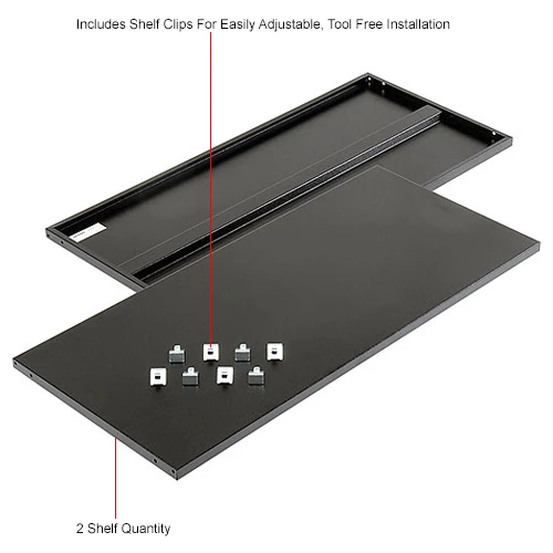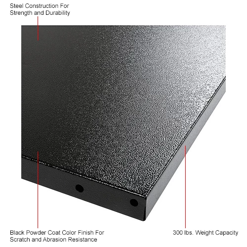 These sturdy steel shelves have channel reinforcements on all sides to provide a 300 lb. capacity. They adjust easily on 2″ centers with strong, convenient shelf clips.