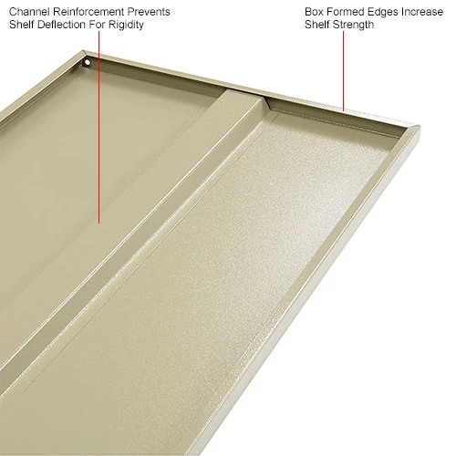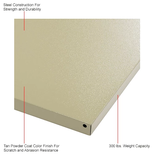 These sturdy steel shelves have channel reinforcements on all sides to provide a 300 lb. capacity. They adjust easily on 2″ centers with strong, convenient shelf clips.