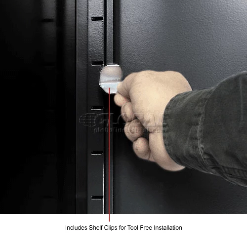 These sturdy steel shelves have channel reinforcements on all sides to provide a 300 lb. capacity. They adjust easily on 2″ centers with strong, convenient shelf clips.