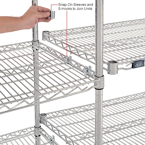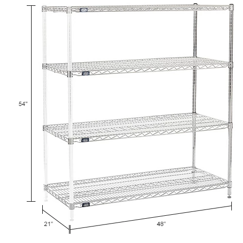 Nexel® Chrome, 4 Tier, Wire Shelving Add-On Unit, 48"W x 21"D x 54"H