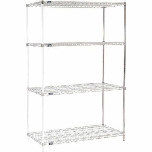 Nexel® Chrome, 4 Tier, Wire Shelving Add-On Unit, 48"W x 24"D x 74"H