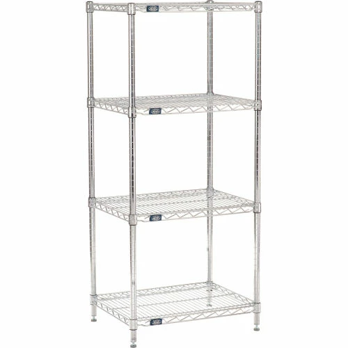 Nexel® Chrome, 4 Tier, Wire Shelving Starter Unit, 30"W x 18"D x 63"H