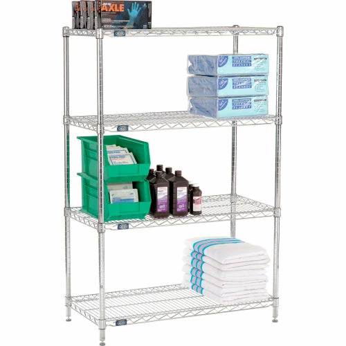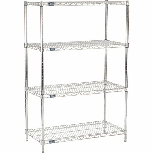 Nexel® Chrome, 4 Tier, Wire Shelving Starter Unit, 36"W x 18"D x 54"H