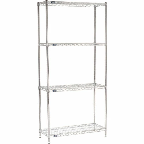 Nexel® Chrome, 4 Tier, Wire Shelving Starter Unit, 42"W x 14"D x 74"H