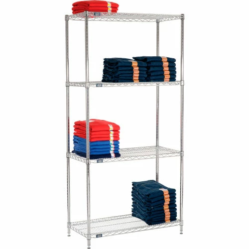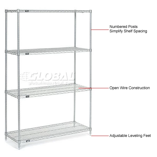 Nexel® Chrome, 4 Tier, Wire Shelving Starter Unit, 42"W x 18"D x 74"H