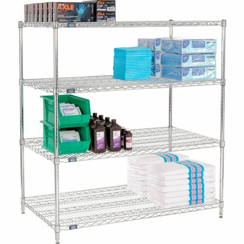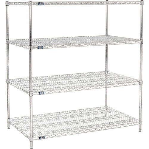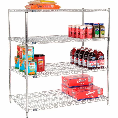 Chrome Starter Units are versatile enough for retail display, but withstand warehouse conditions as well. Starter Unit includes 4 posts with leveling feet, 4 wire shelves and plastic snap on sleeves to secure shelves to posts.