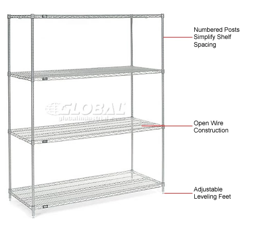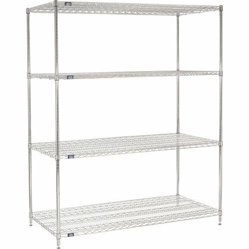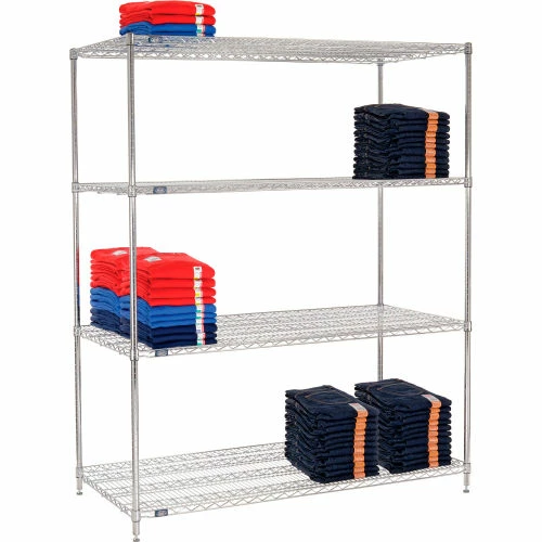 Nexel® Chrome, 4 Tier, Wire Shelving Starter Unit, 60"W x 30"D x 74"H