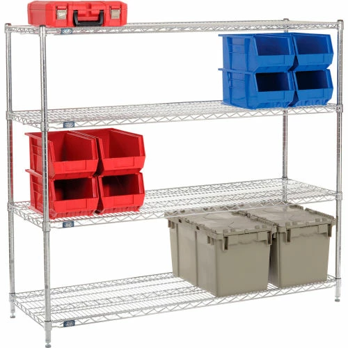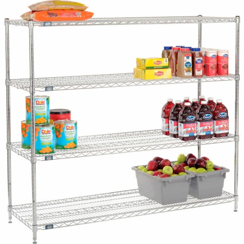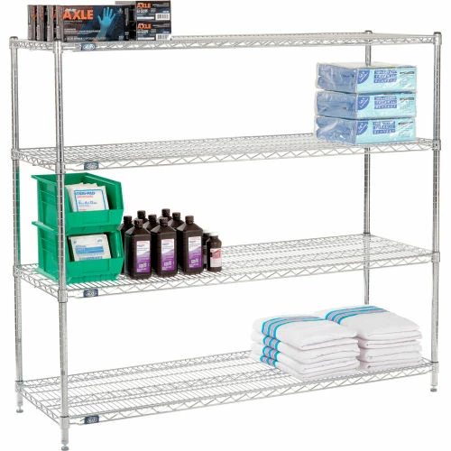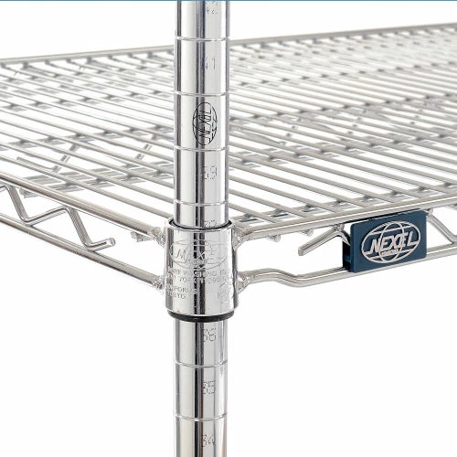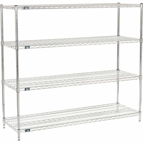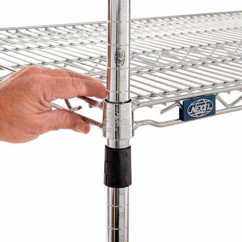 Chrome Starter Units are versatile enough for retail display, but withstand warehouse conditions as well. Starter Unit includes 4 posts with leveling feet, 4 wire shelves and plastic snap on sleeves to secure shelves to posts.