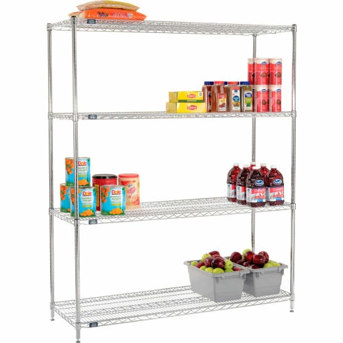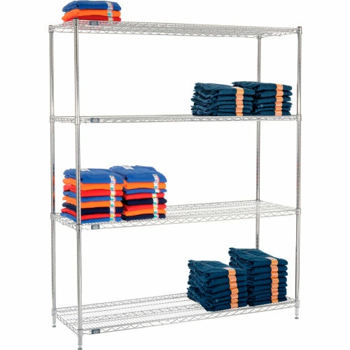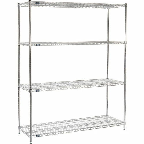 Chrome Starter Units are versatile enough for retail display, but withstand warehouse conditions as well. Starter Unit includes 4 posts with leveling feet, 4 wire shelves and plastic snap on sleeves to secure shelves to posts.