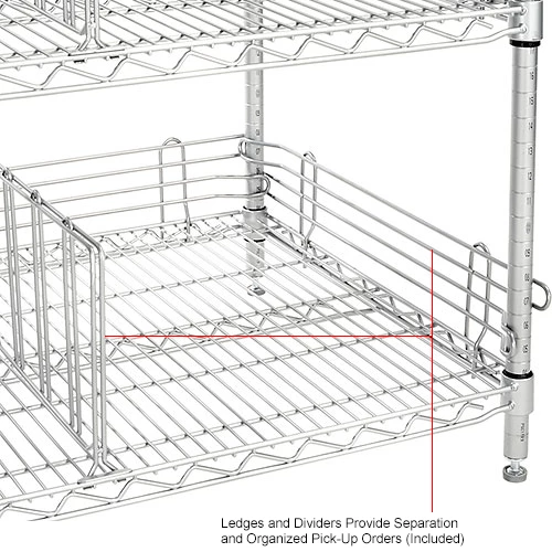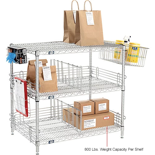 Organize your pick up orders. Keep your orders separated by customer. Rack consists of 4 posts, 3 shelves, plastic shelf clips, ledges, dividers, document holder, basket, and glove holder (sold separately).