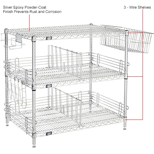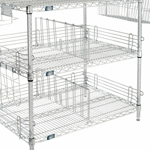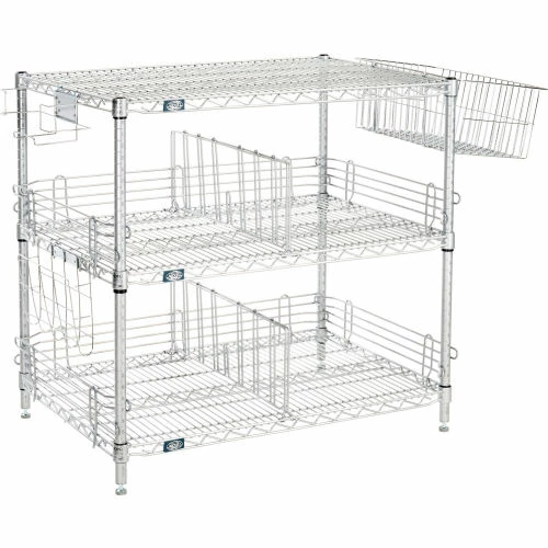 Organize your pick up orders. Keep your orders separated by customer. Rack consists of 4 posts, 3 shelves, plastic shelf clips, ledges, dividers, document holder, basket, and glove holder (sold separately).