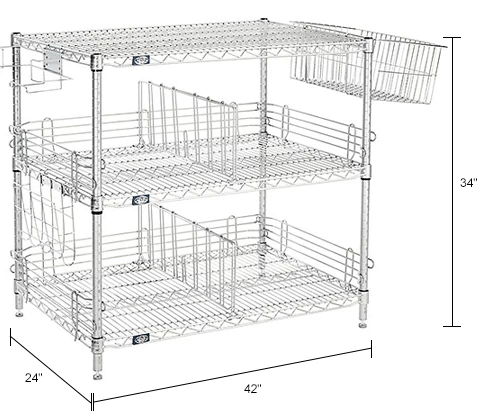 Organize your pick up orders. Keep your orders separated by customer. Rack consists of 4 posts, 3 shelves, plastic shelf clips, ledges, dividers, document holder, basket, and glove holder (sold separately).