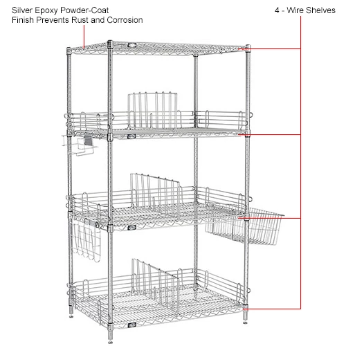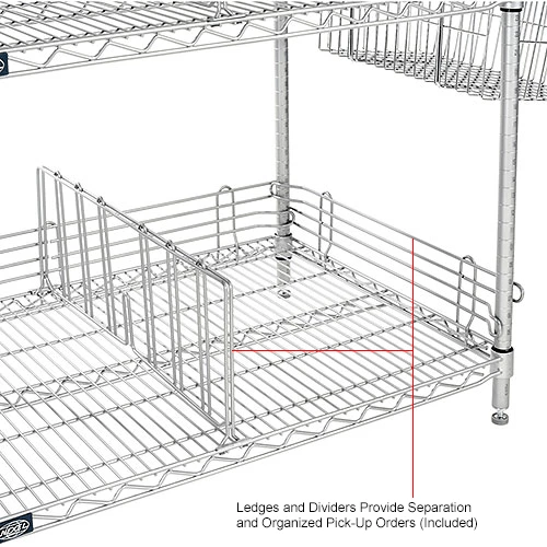 Organize your pick up orders. Keep your orders separated by customer. Rack consists of 4 posts, 4 shelves, plastic shelf clips, ledges, dividers, document holder, basket, and glove holder (sold separately).