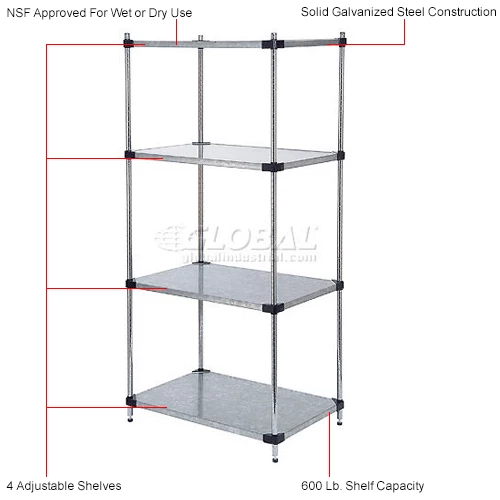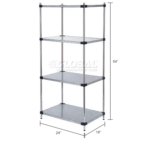 Nexel® Galvanized Steel, 4 Tier, Solid Shelving Starter Unit, 24"Wx18"Dx54"H