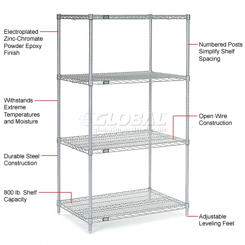 Poly-Z-BriteÂź Starter Units are designed with a clear epoxy finish that handles temperature and moisture extremes well. NEXGuardÂź, an anti-microbial agent, protects the epoxy coating from bacteria, mold, and mildew that causes odors and product degradation. Starter Unit includes 4 posts with leveling feet, 4 wire shelves and plastic snap on sleeves to secure shelves to posts.
