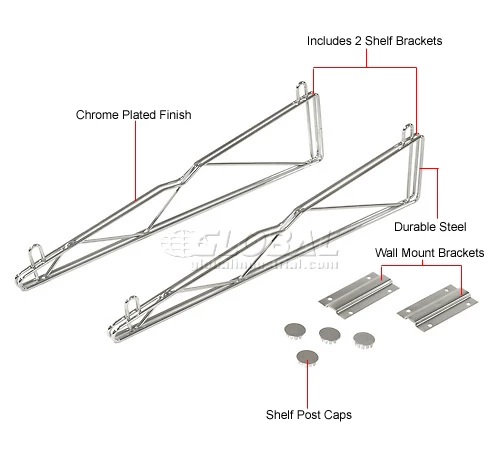 Single Shelf Brackets hold one wire shelf each (sold separately) and attach directly to the wall with the wall-mounting plates (included). Sold in pairs.